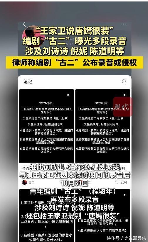 这事得从十月底说起,有个网名叫“古二”的人在平台上发了一段录音,内容据说是王家卫和编剧秦雯之间的对话,里面提到唐嫣为人做作,还牵扯到倪妮拍摄《流金岁月》的一些幕后情况,消息一出就登上热搜榜首,但没过两天,“古二”的公众号就被平台封禁,里面的内容几乎全被清空,只留下一条帖子还在那里挂着。